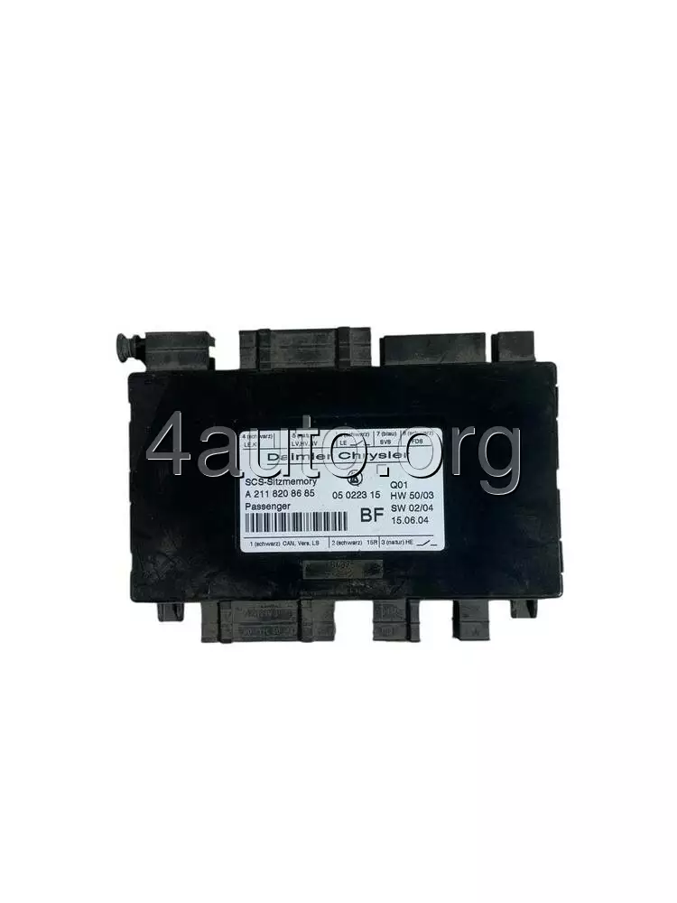 Блок управління переднім сидінням — це електронний модуль, який відповідає за роботу електроприводів, функцій пам’яті положень, підігріву та вентиляції сидінь у Mercedes-Benz W211. Він з’єднаний із кнопковою панеллю на дверях та іншими електронними системами автомобіля через CAN-шину, забезпечуючи точне та швидке регулювання для максимальної зручності водія і пасажирів.