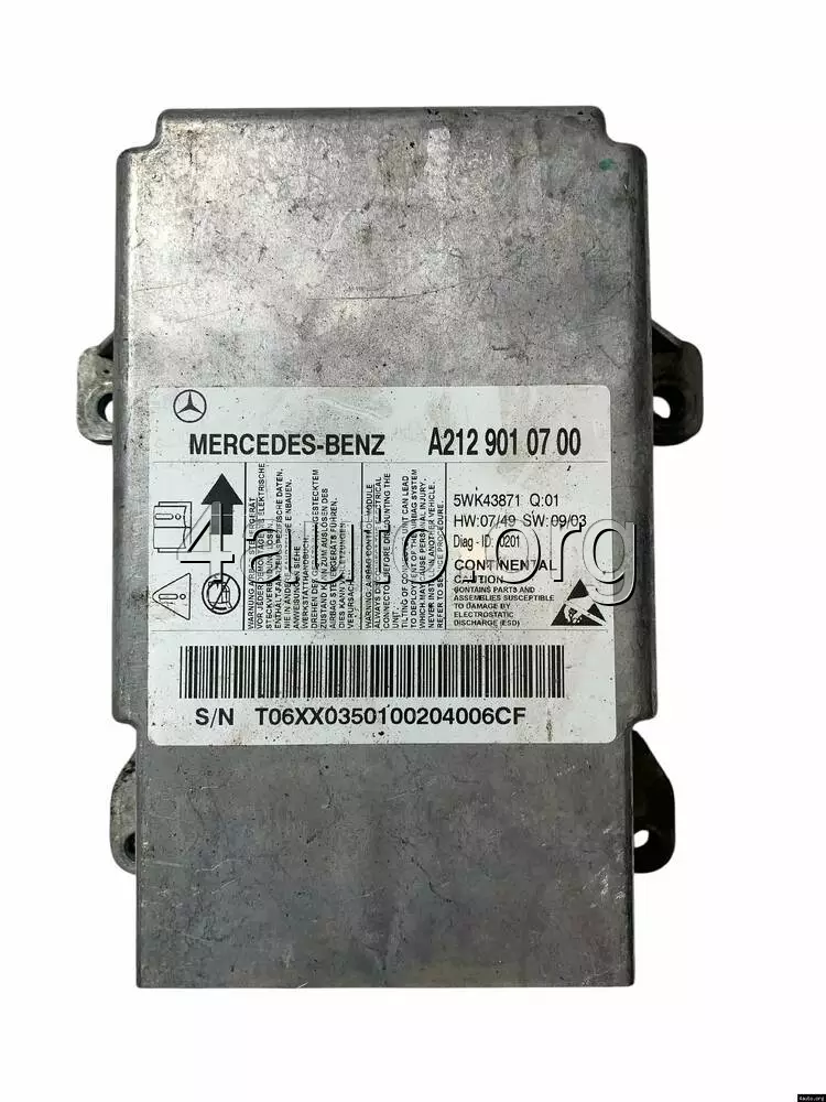 Блок керування Airbag Mercedes-Benz W212 — це критично важлива деталь системи безпеки, яка гарантує своєчасне спрацювання подушок та ременів у разі аварії, забезпечуючи максимальний захист пасажирів.