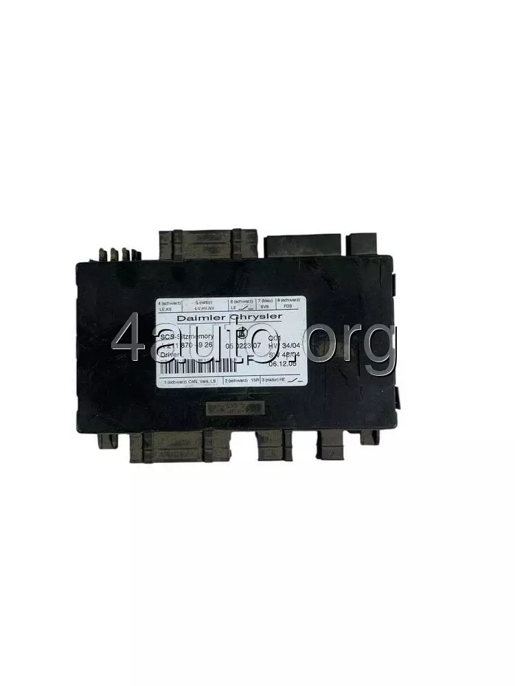 Блок управління переднім сидінням — це електронний модуль, який відповідає за роботу електроприводів, функцій пам’яті положень, підігріву та вентиляції сидінь у Mercedes-Benz W211. Він з’єднаний із кнопковою панеллю на дверях та іншими електронними системами автомобіля через CAN-шину, забезпечуючи точне та швидке регулювання для максимальної зручності водія і пасажирів.