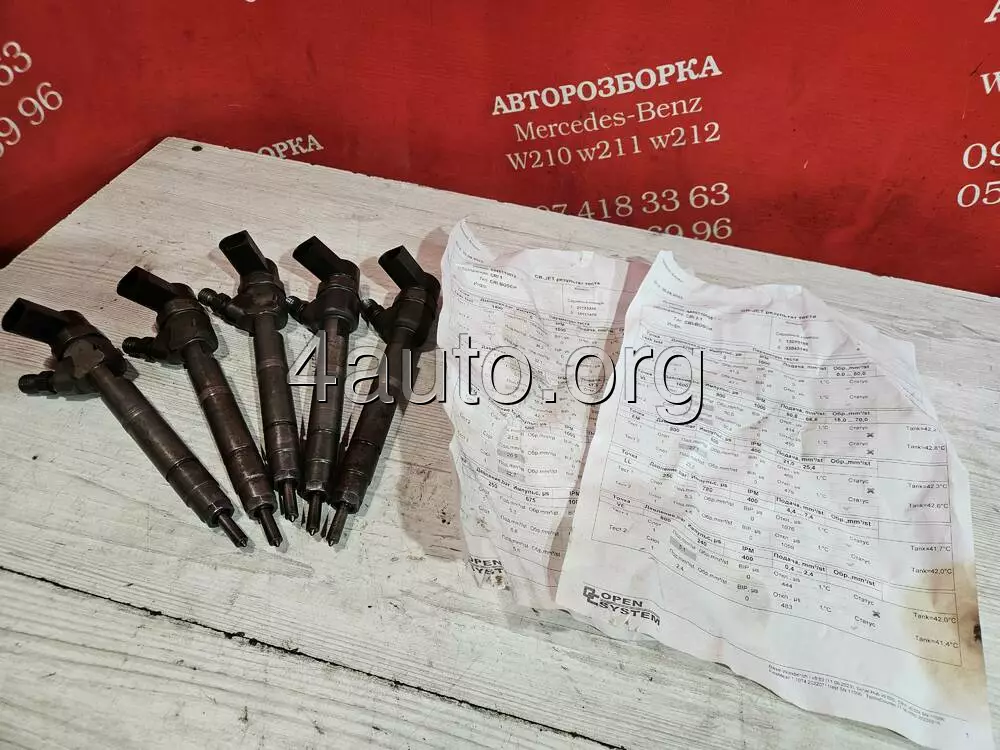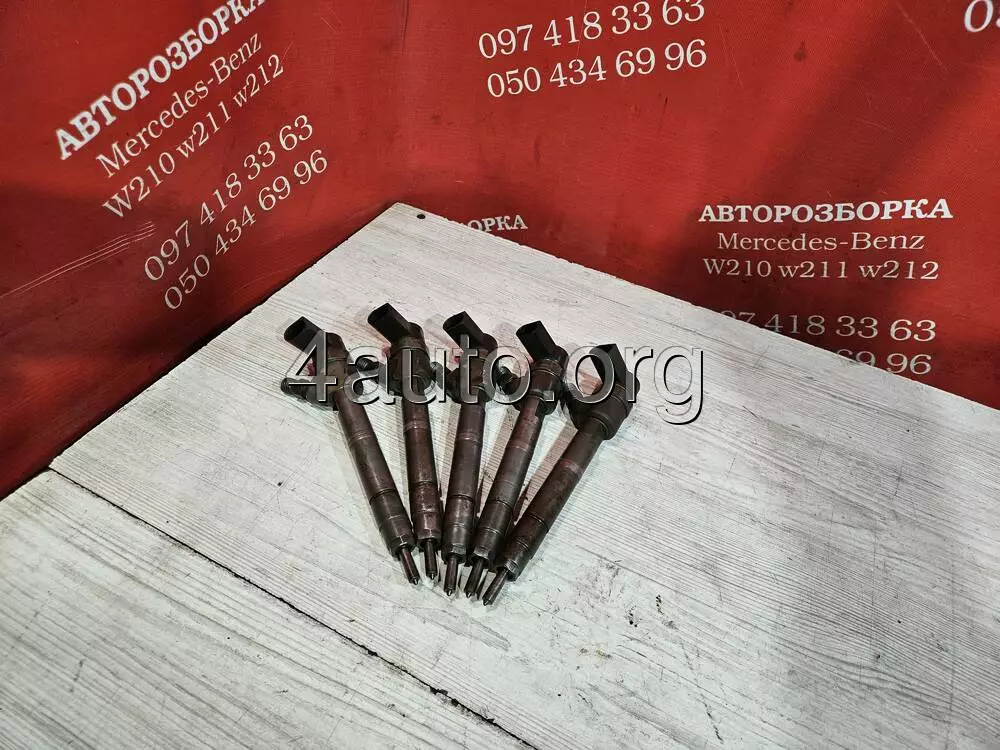 форсунки Мерседес двигун 647 Е270CDI. Форсунки перевірені на стенді, є роздруковка перевірки, надаємо гарантію. Такі форсунки встановлювались з 2002 по 2006р. на Mercedes W211 E-class на дизельний двигун ОМ647 об'ємом 2,7 літра, всі деталі зняті з європейських машин, додаткові фото стану зкидаємо на вайбер. Надаємо гарантію на встановлення 14 днів.